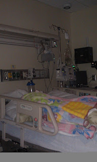 They began treating her with antibiotics in the ER, and continued when we got to her room around 4am. Jeff went back to Em around 1am when we knew they were keeping her. For about 2 hours in the early morning she shook like I've never seen anyone shake before. Her temp was only 100.4, so they think the violent shaking was just from the infection. I was so thankful we brought her here, because if I had seen that at home, I probably would have called 911.
